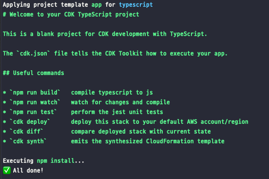 $cdk init --language typescript