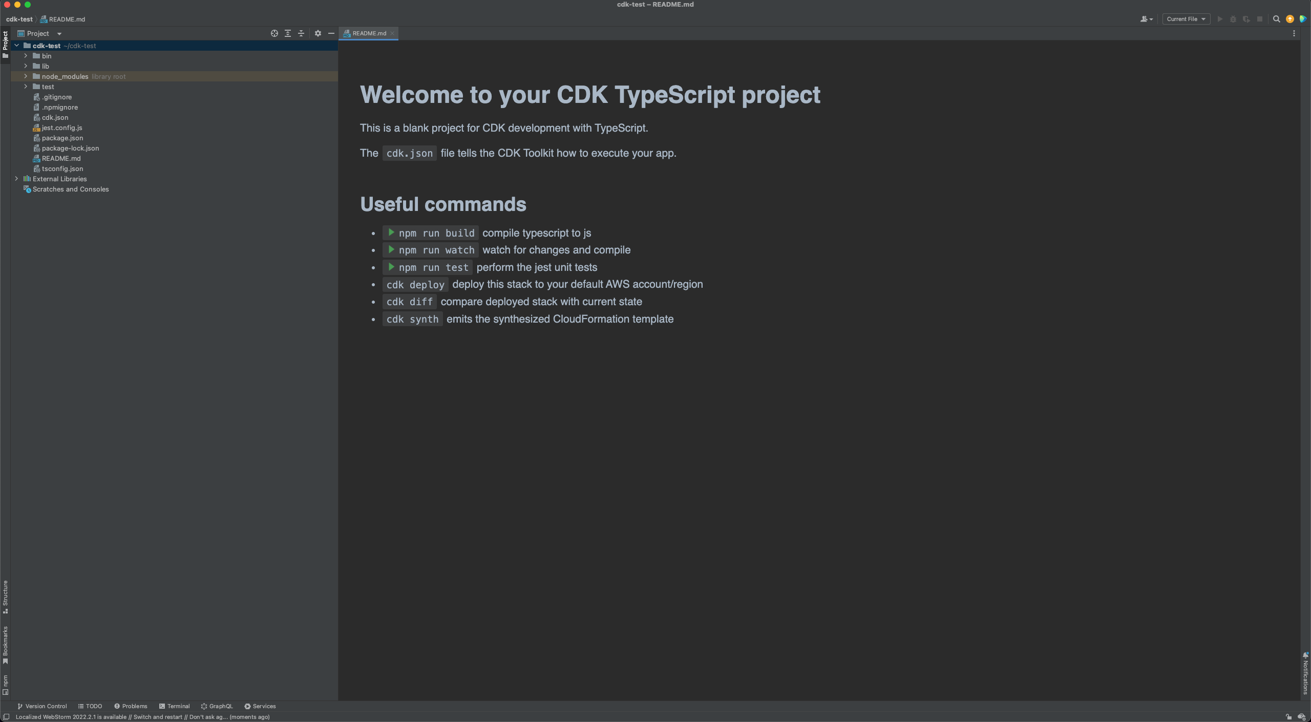 $mkdir cdk-test && cd cdk-test
