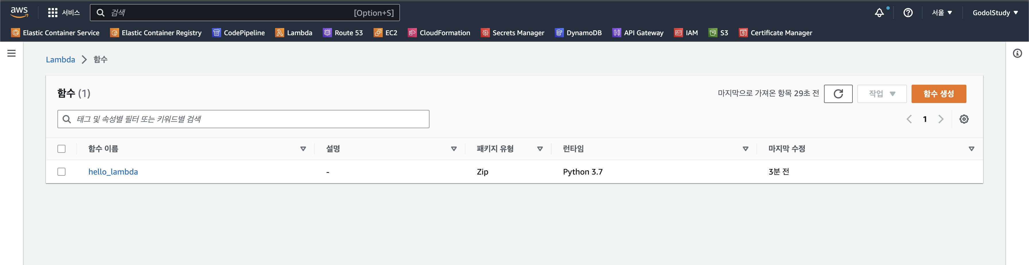 Lambda도 잘 Deploy되었습니다. 이렇게 코드로 (Infrastructure as code)를 AWS에 쉽게 코드로 배포가능 할 수 있습니다.